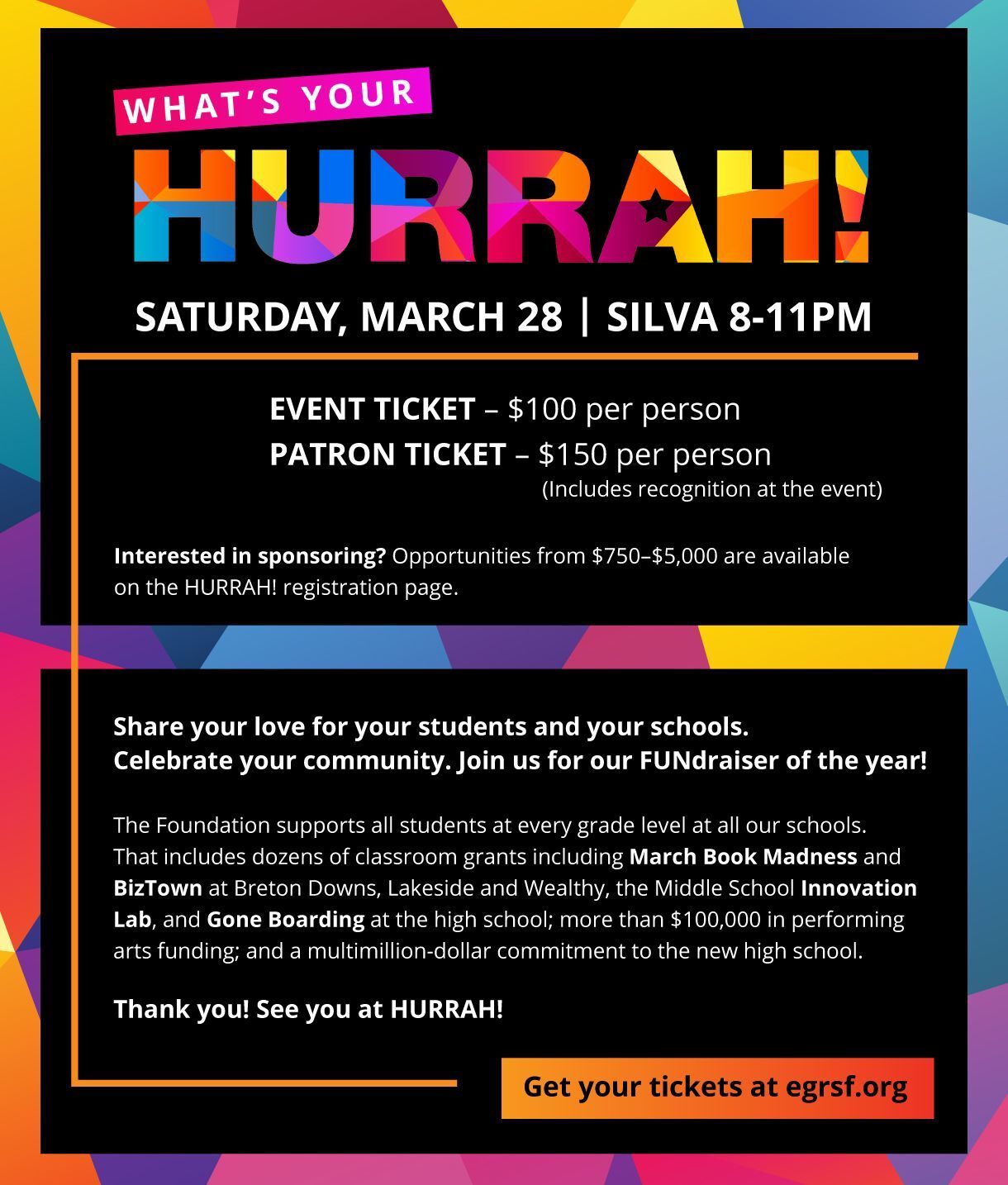 HURRAH ! sponsorships and tickets available now!